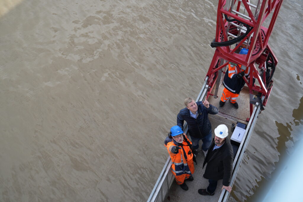 Leer. Bange Blicke bestimmten am vergangenen Montag das Bild bei der Sonderprüfung der Ledabrücke. Die findet zweimal jährlich im Auftrag des Landesamtes für Straßenbau und Verkehr, Geschäftsbereich Aurich, statt. Denn der Zustand der Brücke verschlechtert sich zusehends weiter. Ist sie noch bis zur Fertigstellung des Ersatzbaus in voraussichtlich vier bis fünf Jahren nutzbar? Diese und weitere Fragen stellte der Landtagsabgeordnete Ulf Thiele (CDU) im Rahmen des Prüftermins, an dem er gemeinsam mit dem Stadtbaurat von Leer, Jens Lüning, teilnehmen konnte.