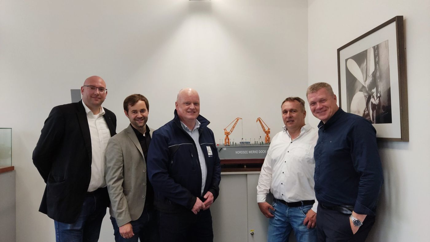 Wie können wir Deutschland als rohstoffarme Industrienation und eine niedersächsische Hafenstadt wie Emden, künftig international ganz vorne positionieren? Diese Frage beschäftigt den CDU-Landtagsabgeordneten Ulf Thiele. Bei einem Besuch mit dem CDU-Kreisvorsitzenden Wilke Held bei der Emder Werft und Dock GmbH (EWD) gab es positive Signale. Allerdings wurde die überbordende Bürokratie beklagt. Das Unternehmen ist in Emden auf dem Gelände der ehemaligen Nordseewerke ein erfolgreicher Partner für die Eigner von Marineschiffen, Handelsschiffen, kleinen Kreuzfahrtschiffen, Superyachten und Offshoreeinrichtungen. Reparaturen und Modernisierungen, Umbauten und Nachrüstungen führen die inzwischen 150 Mitarbeiterinnen und Mitarbeiter auf dem ehemaligen Gelände der Nordseewerke regelmäßig durch. Und das Unternehmen gilt durchaus als Jobmotor in Emden. Denn gestartet war man dort erst vor einigen Jahren mit 57 Mitarbeitern.